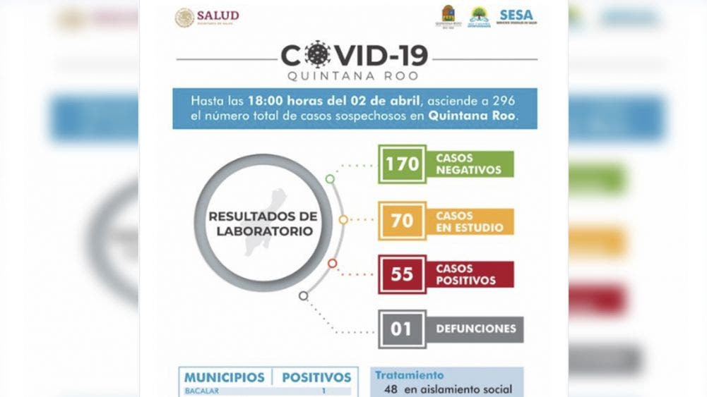 Siguen aumentando positivos de Covid-19 en Quintana Roo, ya van 55.- El progresivo aumento en los casos de Coronavirus – Covid-19, confirmados como positivos...