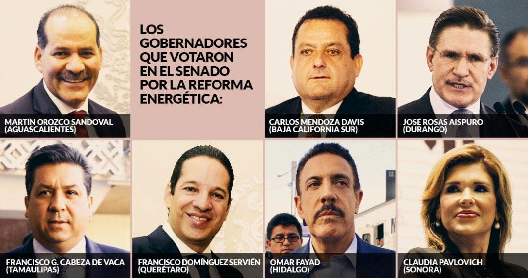 En la lista de los legisladores que aprobaron la Reforma Energética en 2013 hay siete gobernadores en funciones que representan a los partidos Revolucionario...