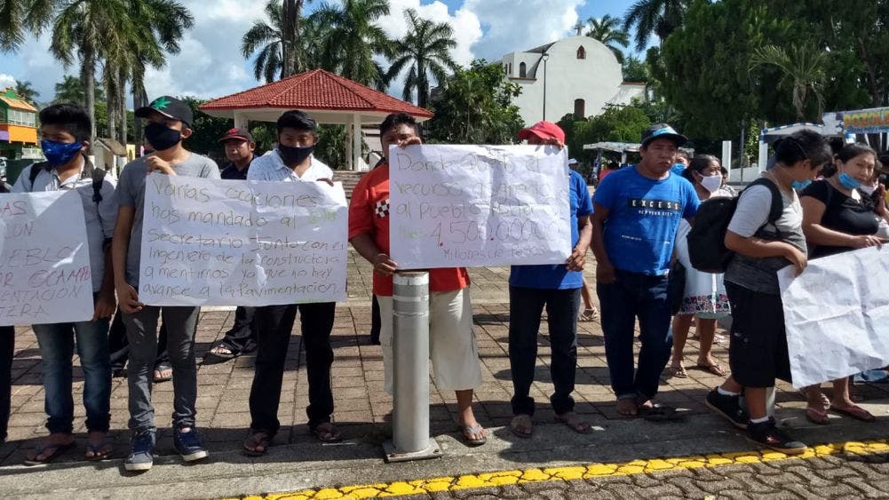 Pobladores de Melchor Ocampo exigen pavimentación.- Se manifiestan habitantes de Melchor Ocampo frente al palacio municipal de Felipe Carrillo Puerto, exigen al gobierno de...