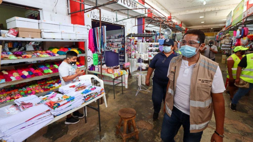 Ante el aumento de casos de coronavirus en la Zona Maya, personal del Ayuntamiento de Felipe Carrillo Puerto realizó acciones de concienciación, con la...