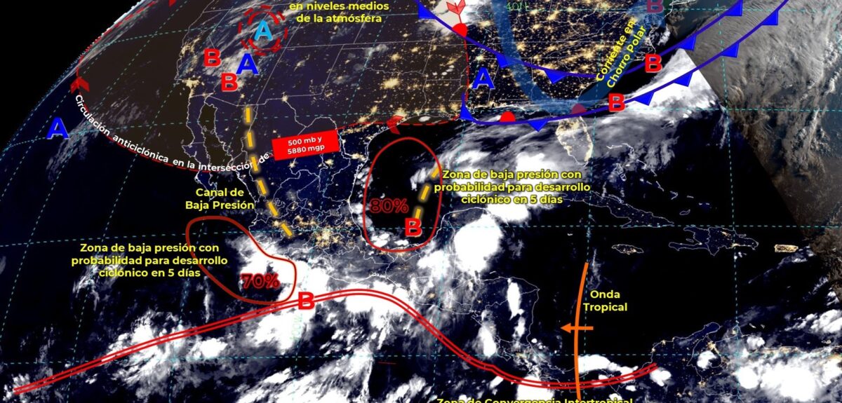 Clima: Lluvias torrenciales para hoy en Quintana Roo. Este día, una zona de baja presión con alta probabilidad de desarrollo ciclónico o posible ciclón...