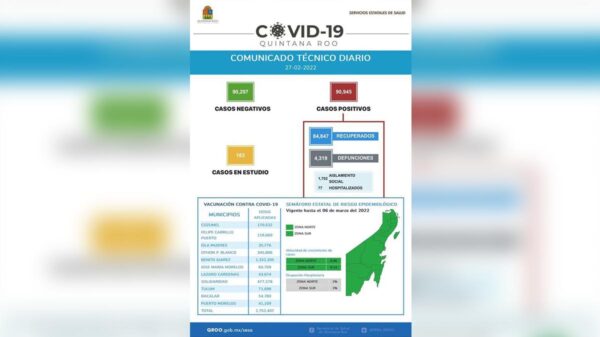 Quintana Roo Reporta Sesa Quintana Roo 11 nuevos casos de Covid-19 La Secretaría de Salud (Sesa) en Quintana Roo, reportó este martes 11 nuevos casos de covid-19 detectados durante las últimas 24 horas, así como... Redacción Turquesa News27 Feb 2022