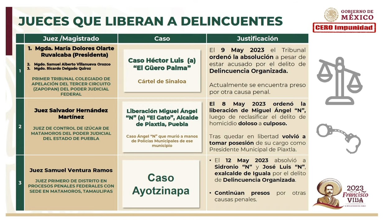 El gobierno federal ubicó a jueces federales que en los últimos 15 días resolvieron la liberación de delincuentes que ya se encontraban detenidos acusados...