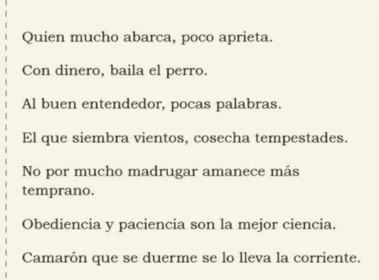 Énfasis: Comenta lo que sabe sobre los refranes.