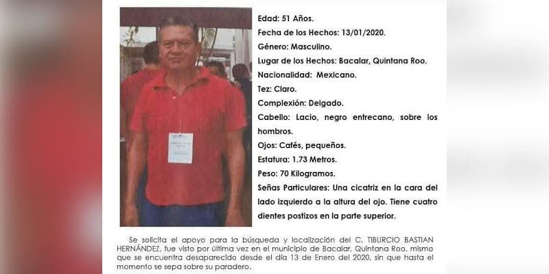 En Bacalar, a un mes de su desaparición no hay indicios del paradero del maestro de bachilleres, Tiburcio Bastián Hernández.