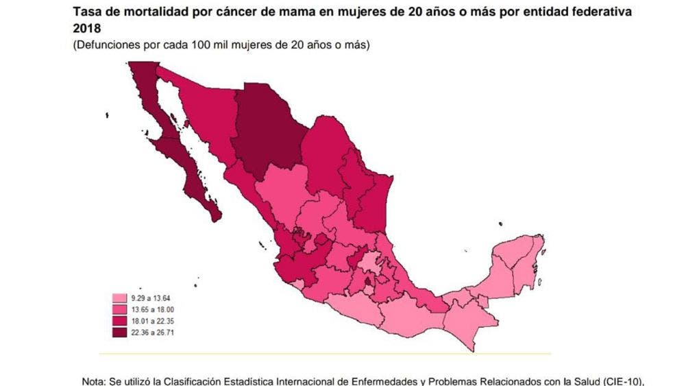 2019 la tasa de incidencia de cáncer de mama mas alta: INEGI
