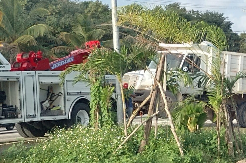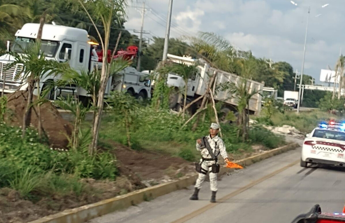La tarde de este viernes, un aparatoso accidente entre un camión de carga tipo volquete y una camioneta particular en el tramo carretero Cancún-Playa del Carmen, dejó saldo un hombre lesionado, el cual quedó prensado dentro de una de las unidades.