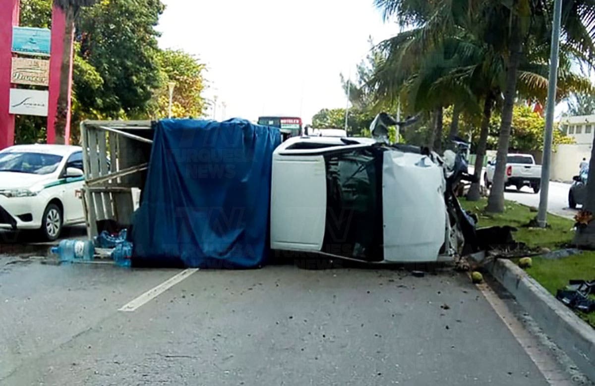 Testigos aseguran que el chofer de la camioneta perdió el control y se estrelló contra las palmeras hasta voltearse.