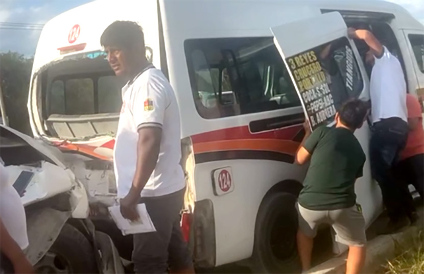 Por lo menos ocho personas resultaron lesionadas durante un accidente vehicular en Cancún, entre una unidad de transporte publico y una camioneta particular. La van fue colisionada por la parte trasera causando lesiones a varios pasajeros.