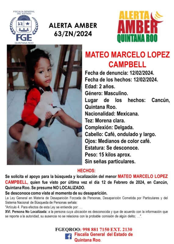 El menor de dos años es de complexión delgada, tez morena clara, cabello ondulado y de aproximadamente 15 kilos. La Fiscalía General del Estado mantiene activa la ficha de búsqueda con número 63/ZN/2024.