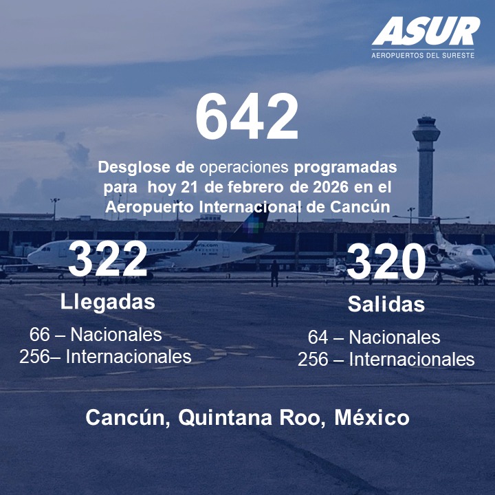 Te Puede Interesar: Aeropuerto de Cancún rebasa los 600 vuelos por primera vez en el año
