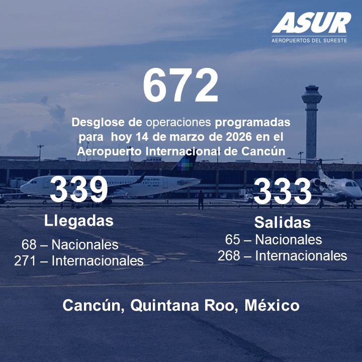 Te Puede Interesar: Aeropuerto de Cancún alcanza 661 vuelos durante este sábado