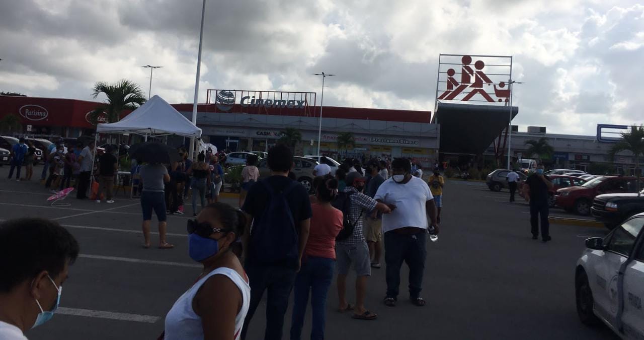 Cierre de módulos de pruebas rápidas de Covid-19 en plazas comerciales de Cancún, causó molestia en la población que tuvo que aglomerarse en los otros que permanecen funcionando.