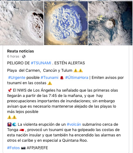 Un terrible Tsunami devastó hoy la isla de Tonga tras la erupción del volcán submarino Hunga-Tonga-Hunga-Ha’apai, tras las presunciones de algunas fuentes sobre afectación en costas de Quintana Roo instando a una alerta, el gobernador del estado Carlos Joaquín Gonzalez informó la postura oficial del gobierno al respecto.