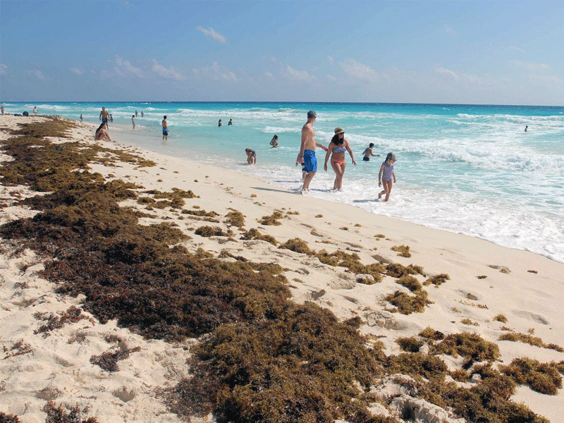 Zonas costeras del Centro y Sur de Quintana Roo se verán afectadas por recale masivo de sargazo, entre jueves y sábado; Cancún “se salva”.