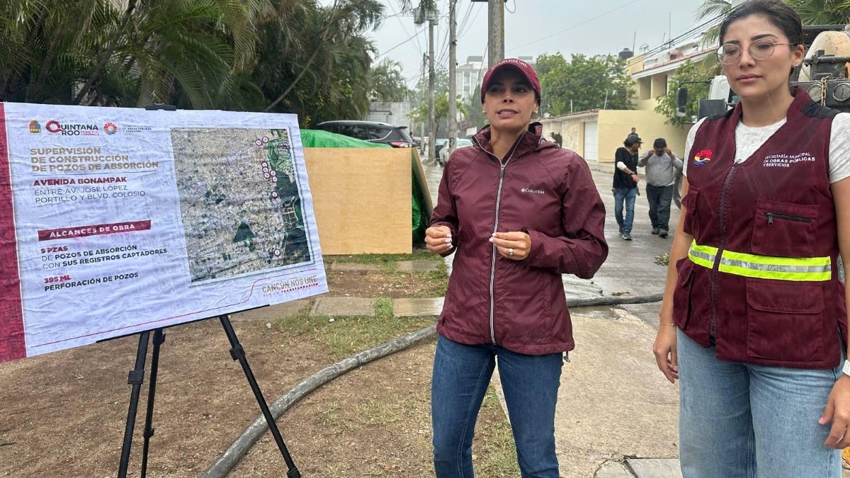 Cancún.- Con el fin de consolidar proyectos que mejoren la calidad de vida de las y los cancunenses, la presidenta municipal, Ana Paty Peralta, supervisó los trabajos de construcción de pozos de absorción en la avenida Bonampak, entre la avenida José López Portillo y el Bulevar Colosio, que llevan más de un 40% de avance, como una acción estratégica para prevenir encharcamientos y reforzar la seguridad vial en temporada de lluvias, respondiendo a una de las principales demandas ciudadanas.