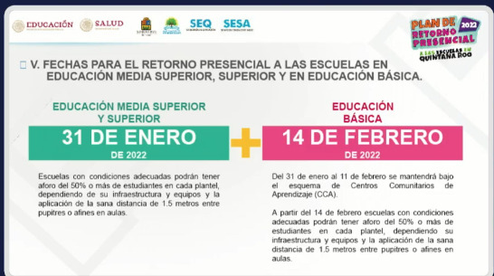 Con la entrada en vigor de la estrategia de regreso a clases presenciales en Quintana Roo, anunciada esta noche por el gobernador de la entidad Carlos Joaquín González, los alumnos estarían regresando a las aulas desde este 31 de enero.