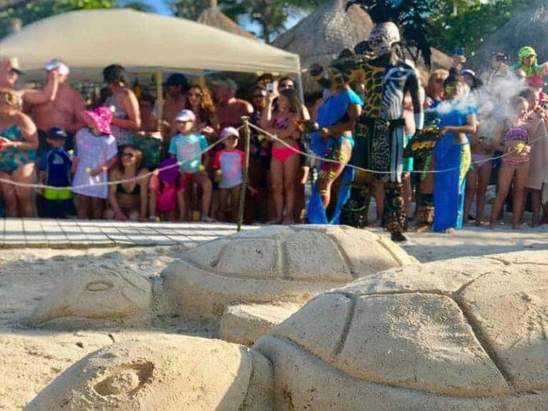 Con las playas de Bahía Príncipe como marco, se escenificó una ceremonia maya para dar la bienvenida a la temporada de anidación de la tortuga marina de este año, con la participación de huéspedes, colaboradores, residentes e invitados especiales.