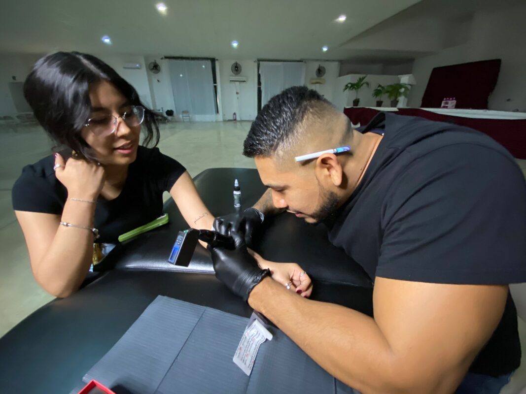 Con el apoyo de don Gastón Alegre López, Director General de Grupo Turquesa, la noche de este jueves 15 de diciembre se llevó a cabo en el salón Turquesa de la ciudad de Cancún el exitoso evento «Tinta en tu piel por alegría en un Corazón», en la que entusiastas artistas tatuadores intercambiaron su arte a donadores de juguetes para niños de escasos recursos.