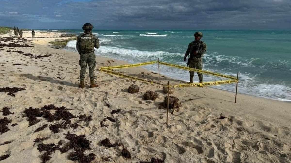 La Secretaría de Marina a través de la Armada de México, por conducto de la Novena Región Naval, informó que los elementos realizaba recorridos de vigilancia terrestre sobre las playas del lado este de citada ínsula, localizando cuatro paquetes envueltos con cinta canela.