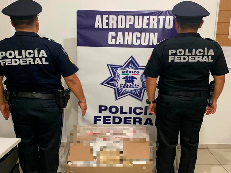 En un comunicado, la corporación federal informó que el hallazgo ocurrió al realizar funciones operativas al interior de una empresa de paquetería en el Aeropuerto Internacional de Cancún.