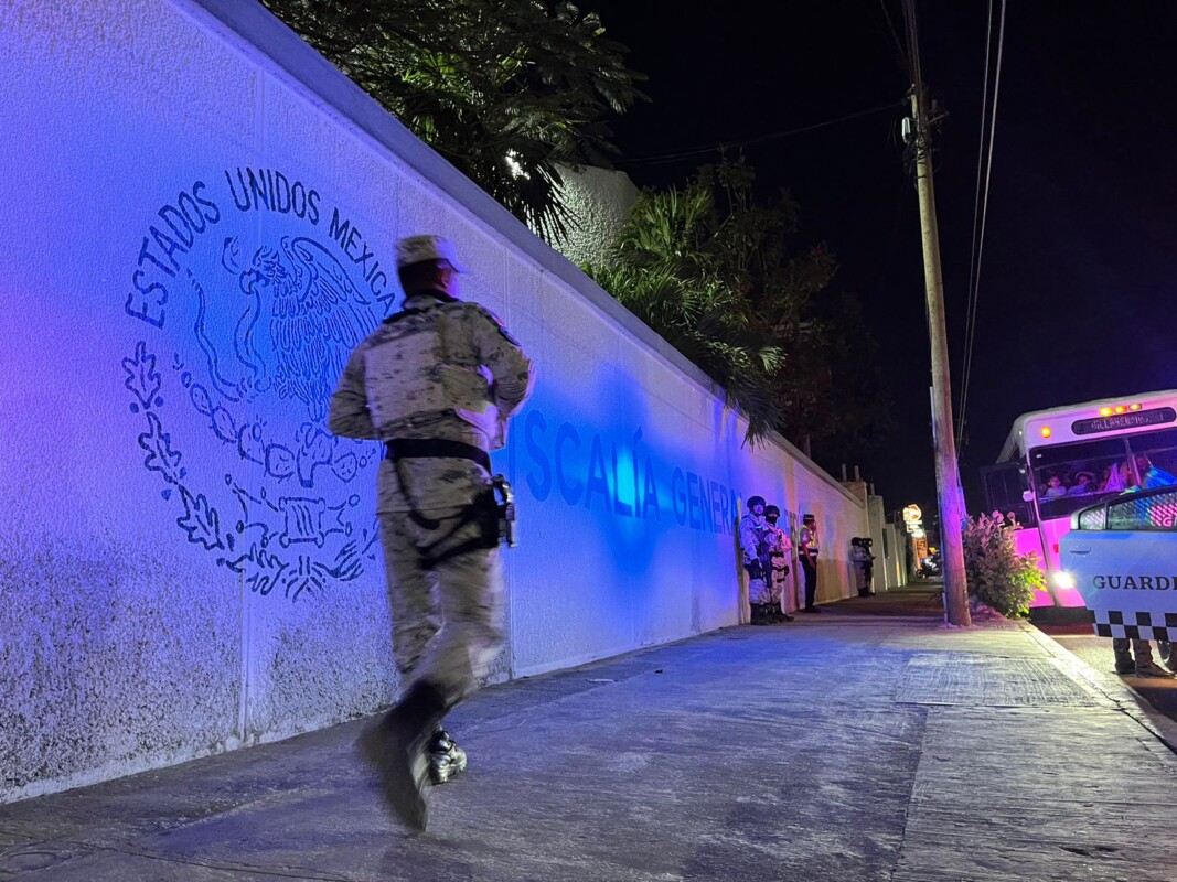 Elementos de la Guardia Nacional (GN) aseguraron en una carretera del estado de Quintana Roo un autobús con aproximadamente 70 personas migrantes, las cuales fueron trasladadas a las instalaciones de la Fiscalía General de la República (FGR).