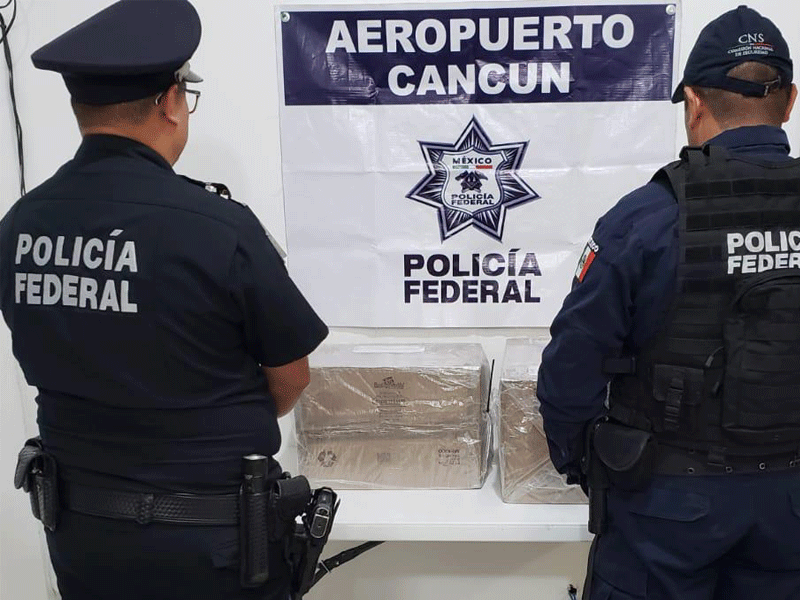 En el reporte se precisó que fueron aseguradas dos cajas de cartón color café con un peso bruto de 2.448 kilogramos que quedaron a disposición de la Fiscalía General de la República (FGR), sede Cancún.