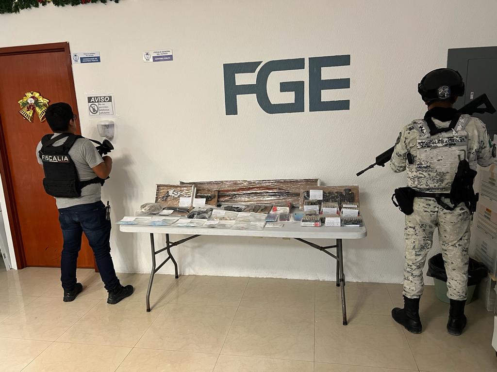 Aseguran drogas, armas, cartuchos y detienen a tres en cateos en Cancún y Playa del Carmen; los inmuebles fueron asegurados por la FGE.