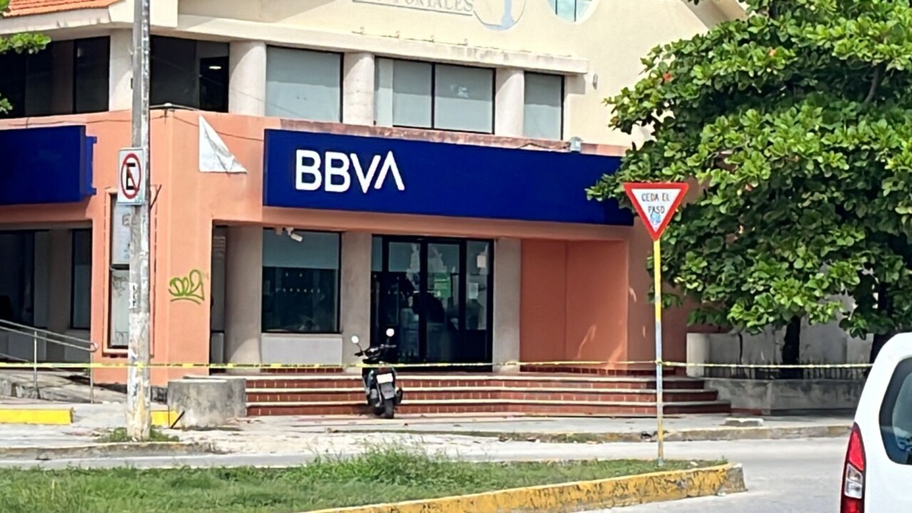 Reportan vecinos de la zona detonaciones de arma de fuego al interior del área de cajeros de BBVA, antes Bancomer, por lo que una persona pierde la vida a consecuencia del ataque armado.