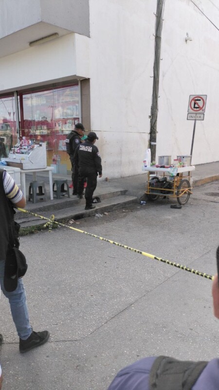 Presumiblemente, el ataque iba dirigido contra dos sujetos que transitaban en el lugar, pero las balas disparadas por los agresores, alcanzaron también a un humilde vendedor de elotes que desafortunadamente quedó en la línea de fuego.