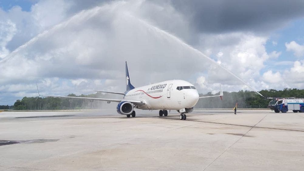 Aterriza avión de nueva ruta Guadalajara-Cancún de Aeroméxico
