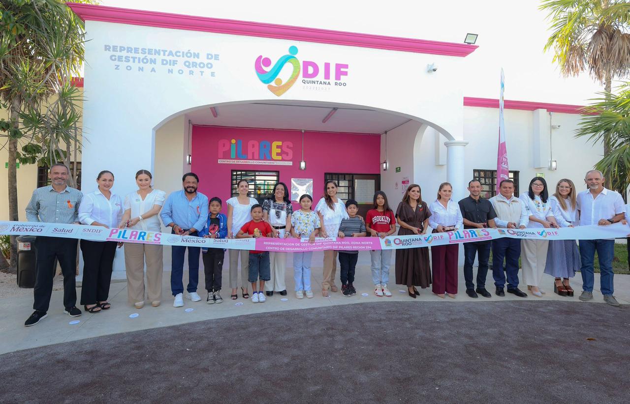 Cancún, Q. R., a 25 de febrero de 2026.- En un acto que refrenda el compromiso de los tres órdenes de Gobierno con el bienestar y la construcción de paz en Cancún, la presidenta municipal, Ana Paty Peralta, atestiguó la inauguración del Centro de Desarrollo Comunitario (CDC) DIF – Punto de Innovación, Libertad, Arte, Educación y Saberes (Pilares) en la Supermanzana 234, donde dio la bienvenida a las familias cancunenses, así como a las autoridades estatales y federales, destacando que la coordinación institucional es la base para transformar comunidades y generar oportunidades reales para quienes más lo necesitan.