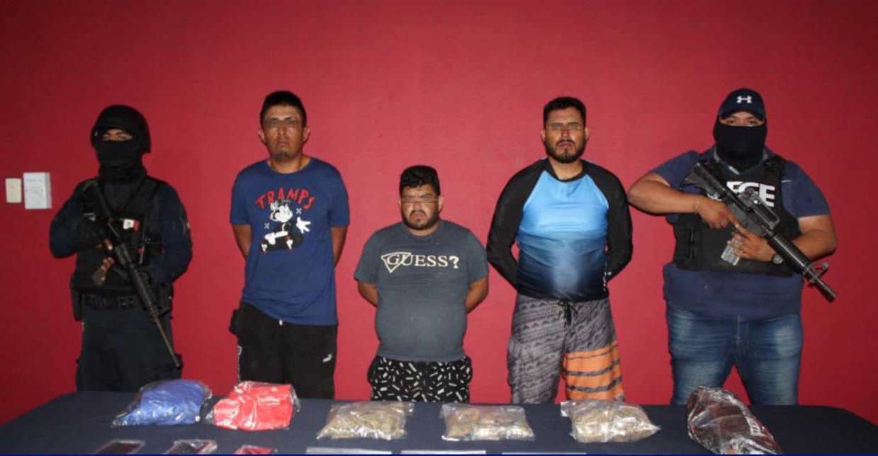 Los narcóticos fueron asegurados por los elementos de seguridad, mientras que los tres hombres fueron detenidos para ser puestos ante la FGE para que se determine su condición jurídica.