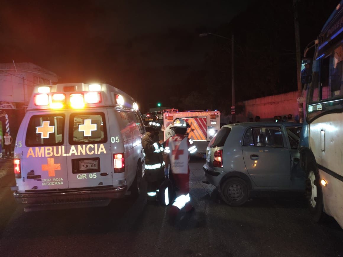 Autobús embiste a compacto en Cancún y lesiona a 4 personas