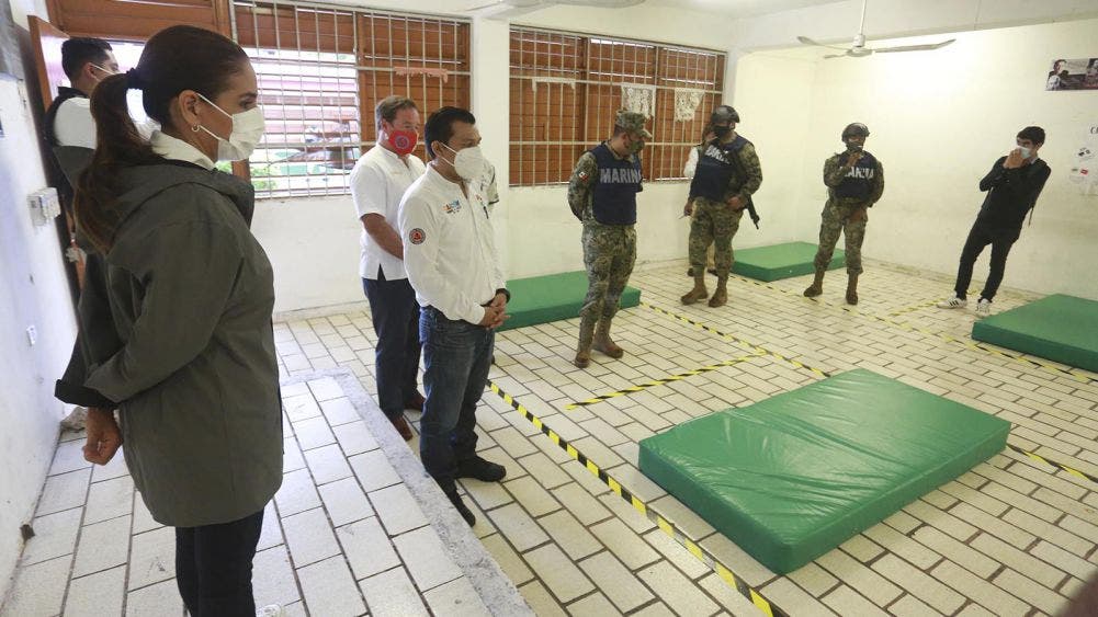 Autoridades supervisan refugios temporales en Cancún.- Para verificar que los refugios anticiclónicos cuenten con las condiciones para garantizar la seguridad y bienestar de los ciudadanos en caso de ser necesaria su apertura, autoridades municipales y federales acudieron a constatar las condiciones de dichos espacios que fueron adecuados conforme a los protocolos sanitarios ante la pandemia de COVID-19.