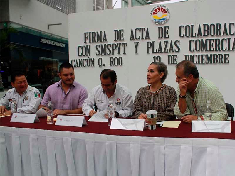 Ante las compras que se realizan en esta época decembrina, La Secretaría de Seguridad Pública y la Asociación de Plazas Comerciales, el día de hoy, suscribieron un acuerdo de colaboración que permitirá a los agentes de la corporación de tránsito entrar a los establecimientos para prevenir hechos delictivos en esos espacios e imponer multas a quienes hacen mal uso de esas áreas.