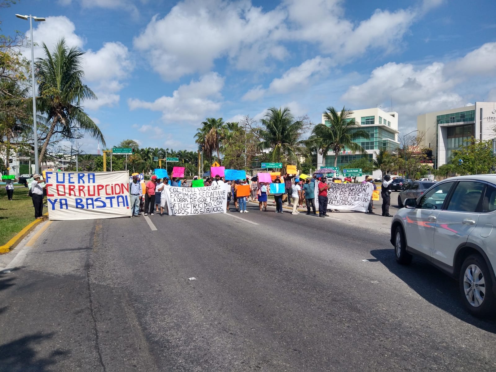 Debido a la presencia de manifestantes de colonias irregulares, se mantiene un cierre a la circulación en el kilómetro 0 de la Zona Hotelera.