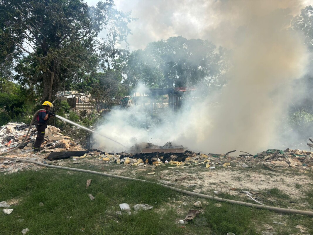 Al arribar al lugar, el equipo procedió a la contención de un incendio en una rehoyada de 5 por 6 metros, donde se consumían llantas, poliestireno, poliuretano, retazos de madera y material de relleno para tablaroca.