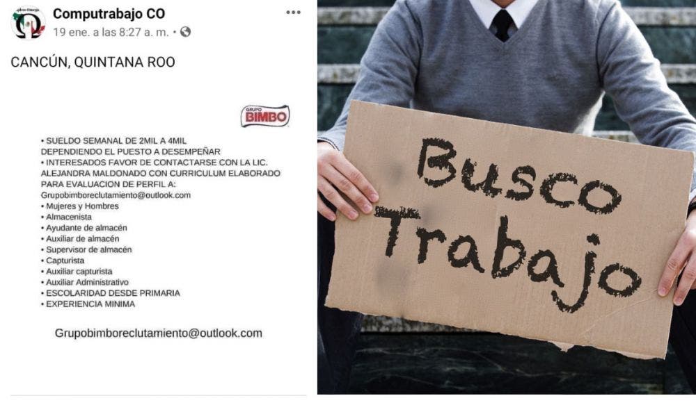 Una persona se acercó a Denuncia Ciudadana para exponer el modus operandi de una de una supuesta bolsa de trabajo a nombre de «Grupo Bimbo» que aparece en Facebook y en la página Computrabajo Co.