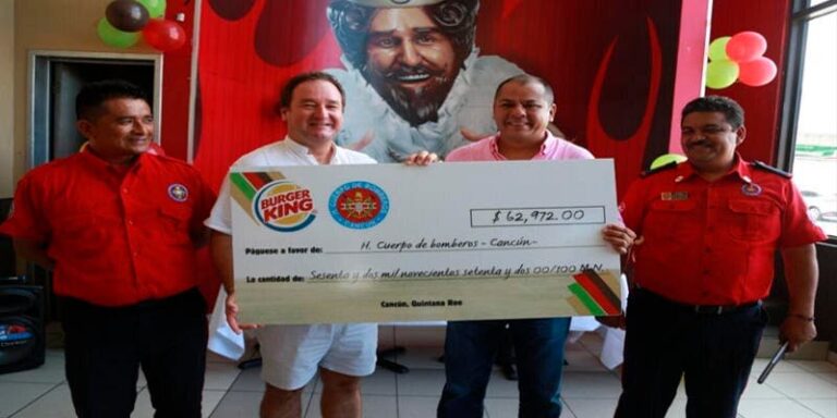 Cadena internacional de comida rápida entregó un donativo económico al cuerpo de bomberos de Cancún por la venta de hamburguesas en sus establecimientos del sureste de México.