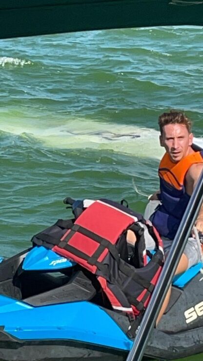 En la zona del impacto se observan partes de la avioneta y personal de rescate a bordo de Motos acuáticas y lanchas en la búsqueda del segundo tripulante.