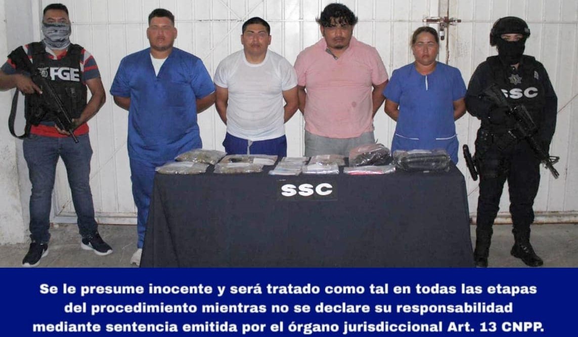 Los detenidos responden a los nombres de Nelson “N”, Lex “N”, Johnson “N” y Nancy “N”, quienes fueron trasladados a la Fiscalía Especializada en Delitos Contra la Salud en su Modalidad de Narcomenudeo para las investigaciones correspondientes.
