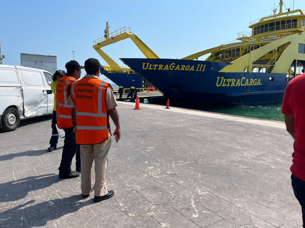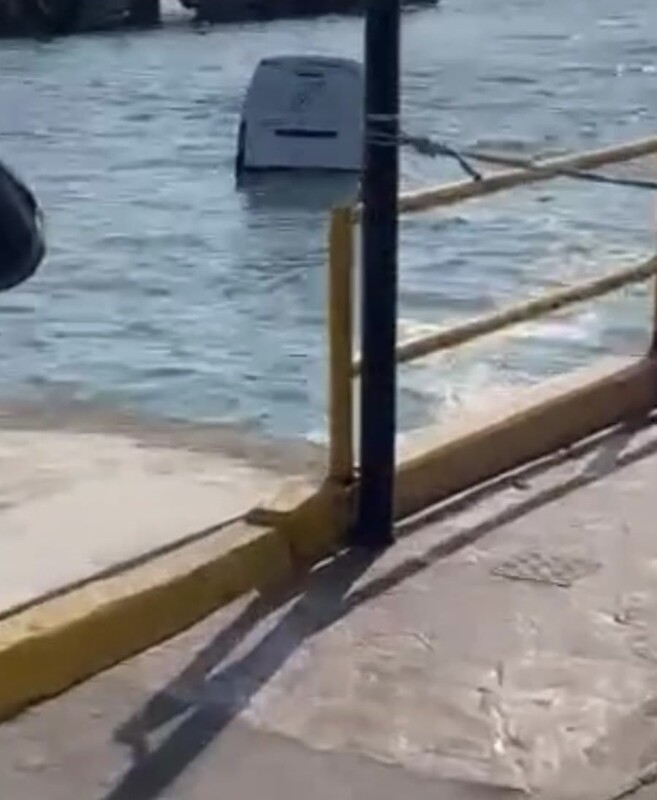 Esta mañana se registró un inusual accidente en el muelle de carga en Punta Sam, cuando una camioneta de una paquetería cayó al mar cuando se preparaban para abordar el ferry.