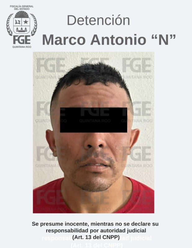 El homicidio ocurrió el pasado 8 de agosto en la Supermanzana 316 de Cancún. Según las fuentes oficiales, Marco Antonio “N” fue arrestado tras ser señalado por su presunta implicación en el caso.