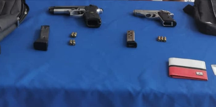 Tras ser ubicados e interceptados por los agentes policiacos, los sujetos fueron sometidos a una revisión minuciosa, en la cual se les logró encontrar entre sus ropas dos pistolas automáticas con sus respectivos cargadores.