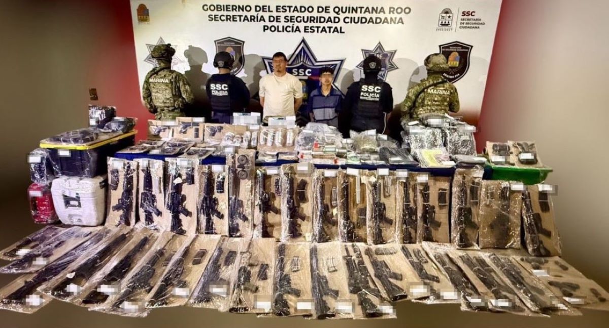 Caen en Cancún dos operadores del CJNG con poderoso arsenal; fueron identificados como Marcos Josué “N” y Ángel Roberto “N”, alias “El Flaco”.