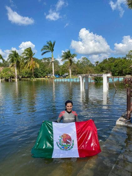 La deportista de especialidad compartió en sus redes sociales varias fotografías de la celebración de su triunfo realizado en el cenote quintanarroense, asi como un mensaje para su familia, amigos y patrocinadores.