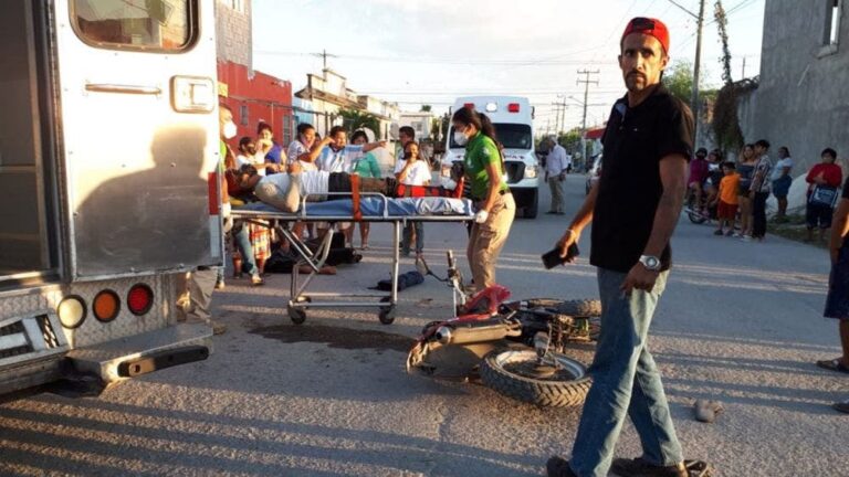 Los hechos ocurrieron la tarde de hoy, en el cruce de la calle Buenavista con avenida Cenote Azul, hasta donde arribaron las unidades de atención médica y un perito de la Dirección de Tránsito.