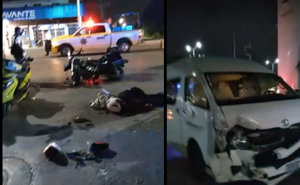 Esta vez se registró un fuerte accidente entre un motocicleta y una camioneta tipo vans, cerca de las 20:00 horas.