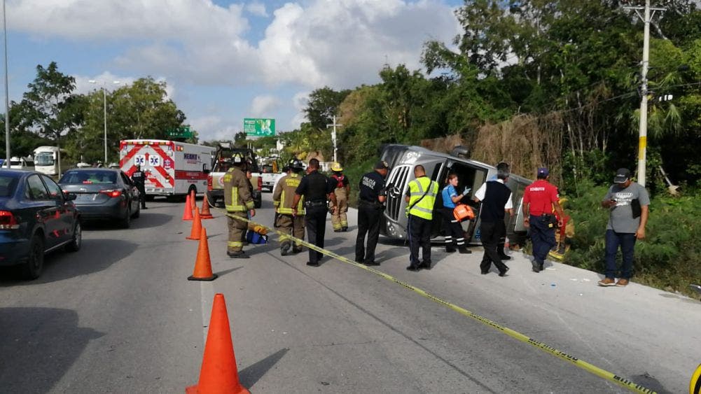 Los hechos se registraron alrededor de las 3:00 de la tarde, cuando el operador de la unidad tipo Mercedes Benz Sprinter, perdió el control al parecer por circular a exceso de velocidad cuando se diría a Cancún.